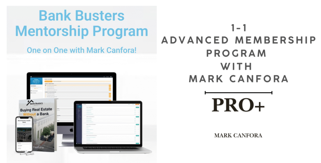 The Pro+ package offers everything included in the Pro plan, plus additional value through a personalized 1-on-1 call with Mark Canfora and access to exclusive contracts and materials. This option provides a more interactive and customized experience for those who want tailored guidance and accountability directly from Mark.
